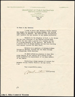 A letter from T. W. Lawton, "to whom it may concern" enthusiastically praising the work of Nathalie Crooms Jenkins (the daughter of J. N. Crooms) as a teacher, but seeming to say that she cannot work in Seminole County because of a school board prohibition against the appointment of too many members from one family.