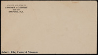 An undated, empty envelope, printed by Crooms Academy with the school's address. -