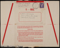 A V-mail letter sent to J. N. Crooms from Technical Sergeant J. D. Thompson, wishing Crooms a merry Christmas and a happy new year.