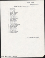A typed list of names of "Persons who have registered for the band", written by J. N. Crooms. -