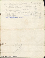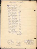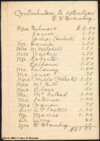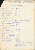 A page of handwritten notes listing the names of donors and the amounts donated. -