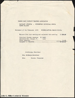 A report from the treasurer of the Orange Belt District Teachers' Association (a "Miss Bonner") that records the balance in the association's treasury, itemized by expenses. -