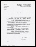 Letter from Creed C. Black to no written recipient. Black announcing that the Knight Foundation will be endowing a Knight Chair in Journalism. July 9, 1990. -