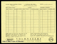 Retired Senior Volunteer Program Timesheet. Document tracks distance travelled and time worked. 1990. -