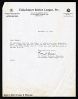 Letter from Ernest Ferrell to Member of the Tallahassee Urban League, inc., November 13, 1987