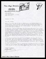 Letter from James McCray to Thelma Gorham. McCray updating Gorham on his past activities and explaining his work at the U.S. Postal Service Black History Awareness Committee. February 21, 1989. -
