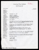 Letter from William L. Winter to Robert M. Ruggles. Winter letting Ruggles know about a discounted price for the book Newspaper Design: 2000 and Beyond.Ruggles forwards to Thelma Gorham. September 24, 1990. -
