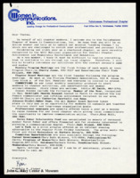 Letter from Kimberly R. Fisher to Thelma Gorham. Fisher welcoming Gorham to the Tallahassee Chapter of Women in Communications. Explains purpose and key individuals. January 9, 1990. -