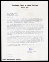 Letter from Robert A. Spivey, president of the Tallahassee Council on Human Relations, to Thelma Gorham. Spivey thanking Gorham for all her efforts in helping he committee. Additionally, Spivey tasks Gorham to chair an upcoming meeting. June 7, 1967. -