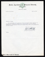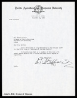 Letter from S. Tanner Stafford to Thelma Gorham. Stafford giving congratulations to Gorham regarding the first issue of "Jottings of the FAMU family." November 19, 1965 -