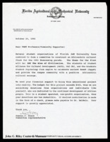Letter from Pamela J. Dixon to Thelma Gorham. Dixon asking for donations for upcoming FAMU homecoming parade. October 29, 1991 -