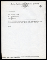 Letter from Jim Hawkins to Journalism Faculty at FAMU. Hawkins informing faculty that they need to submit travel requests 10 days before travel occurs. September 17, 1984 -