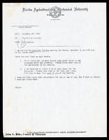 Letter from Jim Hawkins to Journalism Faculty at FAMU. Hawkins informing faculty of upcoming faculty meeting to discuss merit pay policy. November 29, 1984 -