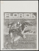 Two photocopied images from the Orlando Sentinel's Florida Magazine.The first is cover for the paper advertising "Astounding Non-Fiction" articles within. Image depicts a caricatured Seminole Indian riding an alligator. Second image depicts a bearded man looking off camera with the word "What" imposed above him. Article is entitled "Central Florida is on the edge of the future in more ways than one," by Michael McLeod. Article describes science fiction and fantasy authors active in Florida. October 6, 1985. -