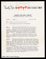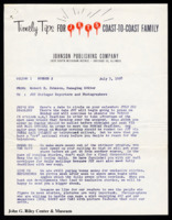 Letter from Robert E. Johnson toJETStringers. Johnson praising Stringer reporters. Indicates that more candid stories and photos were needed. Provides more detail on the magazine's needs throughout. June 30, 1958. -