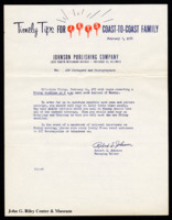 Letter from Robert E. Johnson toJETStringers. Johnson reminding recipients thatJETwanted submissions for various collections from writers and photographers. February 7, 1958 -