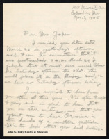 Letter from James W. Schwabe to Thelma Gorham. Schwabe indicated surprise at her writing to him. Offers his services to illustrate her works. Covers his recent employment history. April 3, 1945 -
