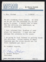 Memo from W. Warner Beckett to Thelma T. Gorham, August 28, 1967