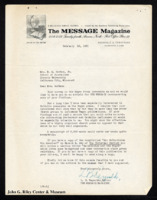 A letter from L. B. Reynolds, Editor of the Message Magazine, to Thelma T. Gorham, in which Reynolds expresses interest in Gorham's work and asks for a manuscript. -