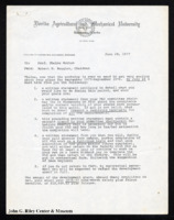 A memo from Robert M. Ruggles, FAMU Chairman, to Thelma T. Gorham, in which Ruggles discusses documents he needs from Gorham. -