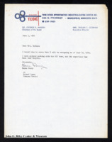 A letter from Nancy C. Riess, Instructor in Communicative Skills, to Celestia H. Fraction, TCOIC Coordinator of Training, in which Riess announces her resignation from TCOIC. -