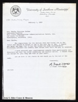 A letter from L. Frank James, of the University of Southern Mississippi, to Thelma T. Gorham, in which James expresses gratitude to Gorham. -