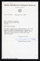 A letter from Gertha H. Ellis, of FAMU, to Thelma T. Gorham, in which Ellis discusses the taking of photographs. -