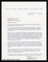 A letter and accompanying envelope from Ronald Shilen, Executive Secretary at the Fund for Adult Education, to Thelma T. Gorham, in which Shilen coordinates with Gorham about letters of recommendation. -