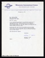A letter from Wallace F. Doerr, President for the Minnesota International Center for Students and Visitors, to Thelma T. Gorham, thanking Gorham for her service as director at the same institution. -