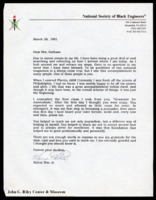 A letter from Norris Hite Jr., of the National Society of Black Engineers, to Thelma T. Gorham, in which Hite Jr. thanks Gorham for the positive influence she had on his life as a professor during his time at FAMU -