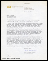 A letter from Susan Fleishman, Director of the College of Liberal Arts Alumni Relations for the University of Minnesota, to Thelma T. Gorham, discussing an upcoming reunion of SLA graduates of the years 1935 and 1945. -