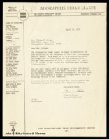 A letter from Gleason Glover, Executive Director of the Minneapolis Urban League, to Thelma T. Gorham, congratulating Gorham on her selection for the Outstanding Service Award.