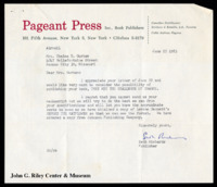 A letter from Seth Richards, publisher at Pageant Press, to Thelma T. Gorham, in which Richards shares he is considering the possibility of publishing Gorham's book. -