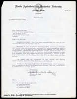 A typed letter from Richard A. Hogg, Provost at FAMU, to Thelma T. Gorham congratulating Gorham on her being recommended for a Teacher of the Year Award. -