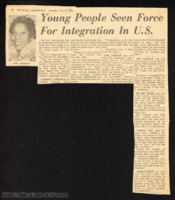 A newspaper article where Thelma T. Gorham speaks of the young people of the time and their attitudes towards race. She explains the ability for this atmosphere to encourage desegregation in the United States. -
