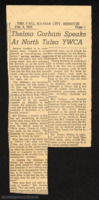A newspaper article discussing Thelma T. Gorham speaking at North Tulsa YWCA. This article includes quotes from her speech. -
