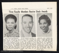 A newspaper article about Thelma T. Gorham being one of three faculty members to receive a $5,000 fellowship form the Fund For Adult Education, White Plains, New York. -