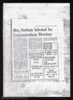 A newspaper article about Thelma T. Gorham being one of 18 individuals to be awarded a fellowship. This meant that she would be doing a study at Stanford in the topic of Human Relations in Communications. Her $5,000 grant allowed her to work toward her doctorate. -
