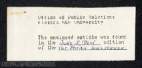 Newspaper articles about Thelma T. Gorham are among 5 black delegates who represent her respective university as a delegate for the inauguration of Dr. Champion. Florida State University’s inauguration for the new president marks the first for this to occur. -