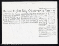 An article about Human Rights Observance Day program that is being hosted by the Baha'is of Bay County. It is a day, December 10th, that celebrates when the Universal Declaration of Human Rights was signed in 1948. -