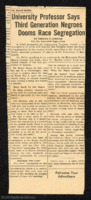 "University Professor Says Third Generation Negroes Dooms Race Segregation"