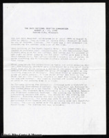 A description of the timeline of events that occurred surrounding the 34th national drifter convention. A letter from Thelma T. Gorham thanking her fellow members for naming her "Now Black Woman of 1990." -