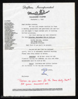 A letter from Rosebud Bruton to the members of the Tallahassee chapter of the Drifters providing information about a mandatory meeting in September. -