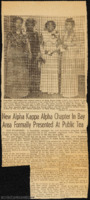 A newspaper clipping about the sorority officers of Alpha Kappa Alpha at the tea event that would present the new Bay Area graduate chapter, Delta Zeta Omega. -