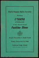 A pamphlet of the sponsors of the L'Tanya of Hollywood fashion show presented by Alpha Kappa Alpha Sorority. -