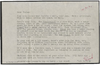 A typed letter from Richard McCurdy to Thelma Gorham mainly about the films that he sent with the letter. The letter also details the characteristics of different kinds of films and the best settings to use them in. -