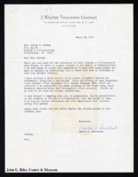A letter and attached document from Amelia A. Grinstead, of the J. Walter Thompson Company, to Thelma T. Gorham, in which Grinstead accepts Gorhams invitation to serve as a guest lecturer -