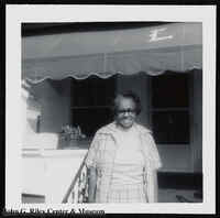 Photograph of Thelma T. Gorham on the front steps of an unidentified building. -