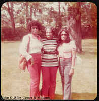 Photograph of Thelma T. Gorham and two unidentified women standing outside. -