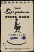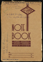 A notebook of handwritten notes by Thelma T. Gorham. The notebook includes journalistic notes, contact information and other miscellaneous jottings. Tucked into the notebook is a handwritten letter, the first page of a printed story, printed letters about a religious organization and Gorham's involvement in a PTA program, a page from Collier's Magazine about Harlem, newspaper clippings about African American pecan farmers and the Creston Hills PTA, a PTA pamphlet, a printed list of committee chairmen, an envelope, memos from the Citizen's Protective Committee and the Oklahoma City Junior Chamber of Commerce, and other miscellaneous handwritten inserts.